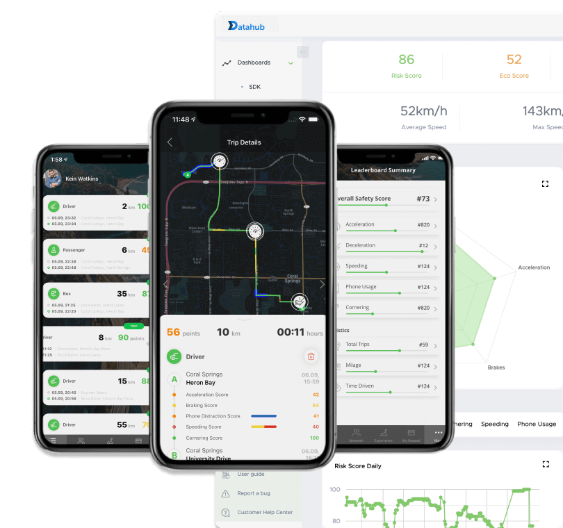 DataHub is a web portal for managing telematics end to end. Managers explore trips and insights, developers configure integrations and credentials, and product teams monitor and optimize performance.
