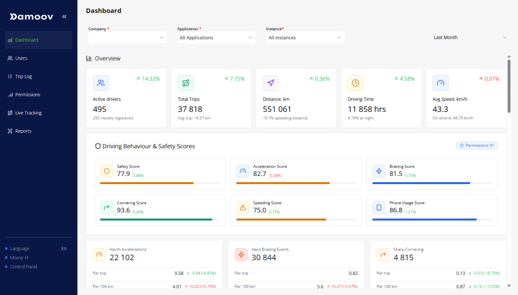 Driver tracking, trip analytics, and real-time mobility insights.